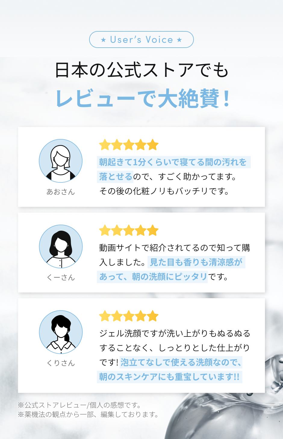 朝起きて1分くらいで寝てる間の汚れを落とせるので、すごく助かってます。