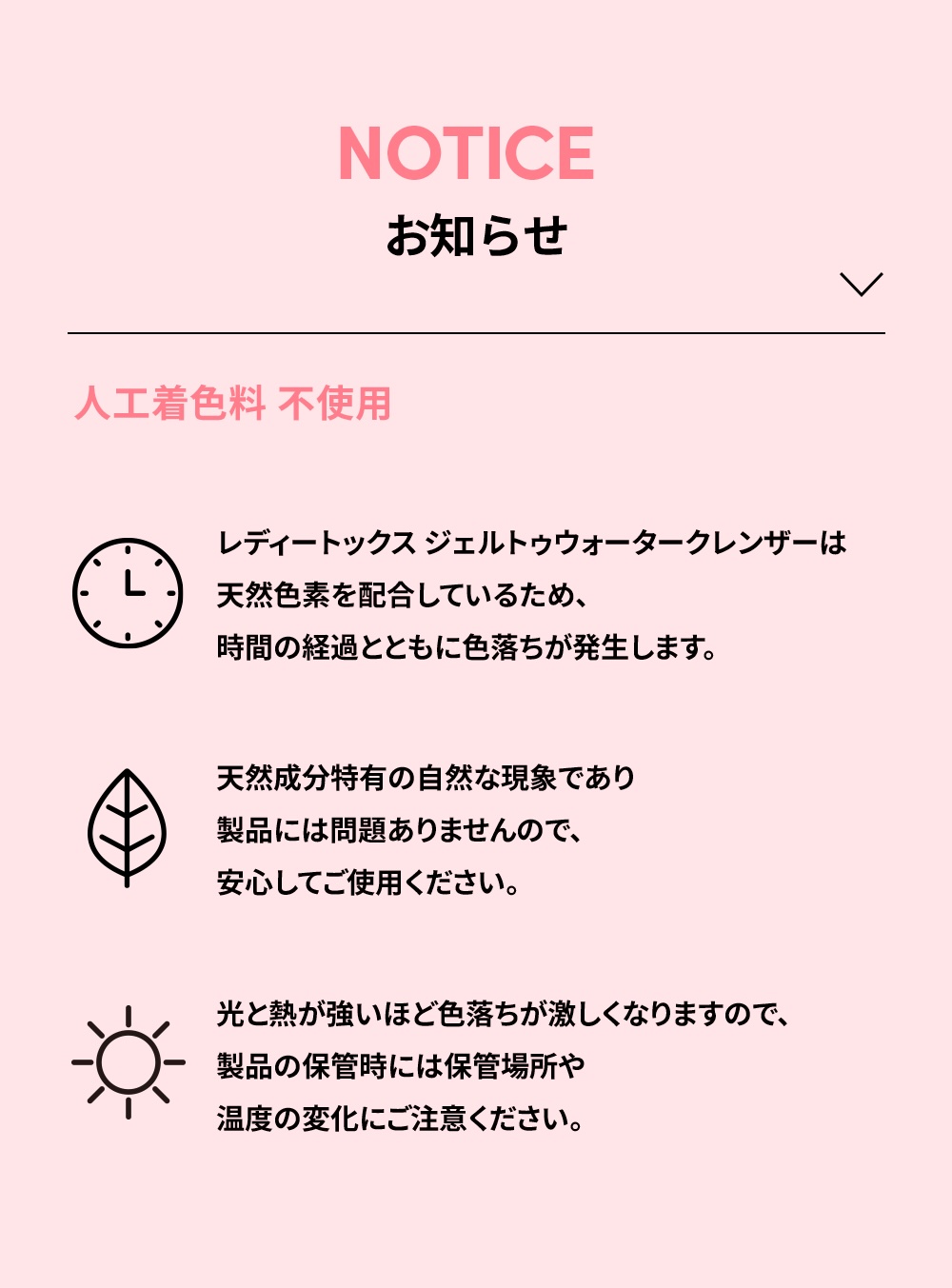 ●お肌に異常が生じていないかよく注意して使用してください。化粧品がお肌に合わないとき即ち次のような場合には、使用を中止してください。そのまま化粧品類の使用を続けますと、症状を悪化させることがありますので、皮膚科専門医等にご相談されることをおすすめいたします。①使用中、赤味、はれ、かゆみ、刺激、色抜け(白斑等)や黒ずみ等の異常があらわれた場合。②使用したお肌に、直射日光があたって上記のような異常があらわれた場合。●目に入らないようご注意ください。目に入ったときは、直ちに洗い流してください。●傷やはれもの、湿疹等、異常がある部位にはお使いにならないでください。●乳幼児の手の届かないところに保管してください。●極端に高温又は低温の場所、直射日光のあたる場所には保管しないでください。